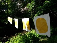 Die Installation zeigt den Wert, die Größe, die Schönheit dieses alten Produkts von Frauenarbeit. Sie bringt das ans Licht, setzt es der Luft und der Sonne, dem Wind und dem Regen aus, was jahrzehntelang als